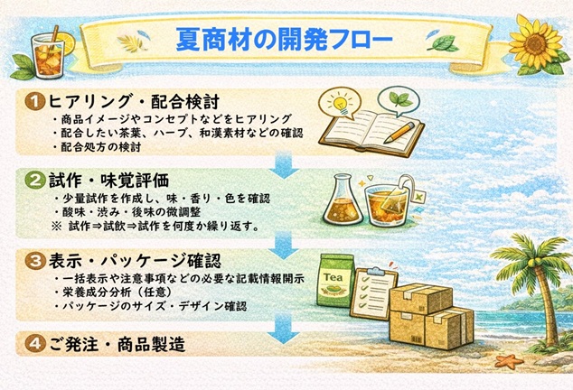 ・ 3~4 月:試作・味の確定         ☝夏商戦に向けた春の棚取り時期!